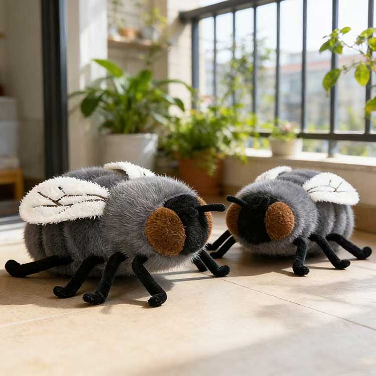 Our fly plush toy meets customization needs, supporting custom wash labels, sizes, and shapes, providing a one-stop solution to all your purchasing pain points. Regarding care labels, we can print your brand logo, product information, safety certifications, and other content according to your brand needs, ensuring compliance and professionalism. Size customization is exceptionally flexible; whether you want it shrunk to 10cm for a pendant or enlarged to 50cm for a display piece, we can precisely adjust it to meet the display needs of different scenarios. Shape customization is another highlight. If you have a unique IP character or special design requirements, even just adding a small accessory or changing an expression, our experienced sample makers can reproduce it from the artwork. The sampling cycle is short, modifications are timely, and the mass production cycle is stable, giving you peace of mind when purchasing.